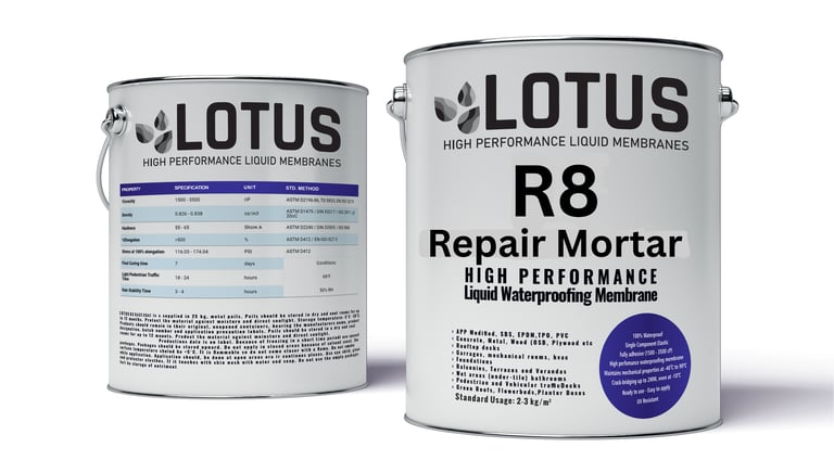 Lotus R8 Polymer-Modified Repair Mortar is a high performance, polymer-modified structural repair mortar suitable for both vertical and overhead applications. Its formulation ensures low sag, allowing for partial-depth repairs or sculpting to match existing surfaces. Ideal for repairing cracks, curbs, steps, loading docks, retaining walls, decorative moldings, and virtually any concrete surface